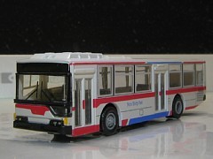 と言うことで無事に栗鉄マスターさんと合流し、しばし談笑(ぉ ようやくイベント会場を見て回ることになりましたが、まずは物販コーナーを冷やかす見て回ることに。横浜高速鉄道では「みなとみらい線開業2周年」の記念パスネット(行ったときは、3日販売分は売り切れ)&記念入場券が売られてました。・・・2月1日に雨の中買いに行ったっちゅうに(笑 あとは小田急では10000形ロマンスカーのBトレの先行販売をやってた&京急でもおなじみの電車のBトレを売ってたのが印象に残りましたが、ココはガマンガマン(ぉ そういいつつ奥の方に進んでいくと、とミックスとかバスコレでおなじみのトミーテック&鉄道模型などでおなじみのGM・・・もといグリーンマックスのブースが。“グリーンマックスでは特にコレってモノはないだろう”なんて思いつつ見てみると・・・目につくモノがありました(笑 まあ一言で言えば、ニューエアロスターの模型ですね。あったのは横浜市営バス・東急バス・名古屋市営バス・よく分からないもの(?)ですけど、横浜市営で“あのタイプ”の中ドアーは見たことがないってことで買うとしたら東急バスってコトにしました。で、値段を聞いてみると500円とのことだったんで・・・即購入決定で、それが下の写真です(ぇぇぇ いや、最初は買う気はなかったんですよ。たぶん(何さ 余談ですが調べてみると横浜市営では初期の“ニューエアロスター・ノンステップ”の中ドアーがこのタイプで、後のバス撮影の際に生で見ました(ぉ